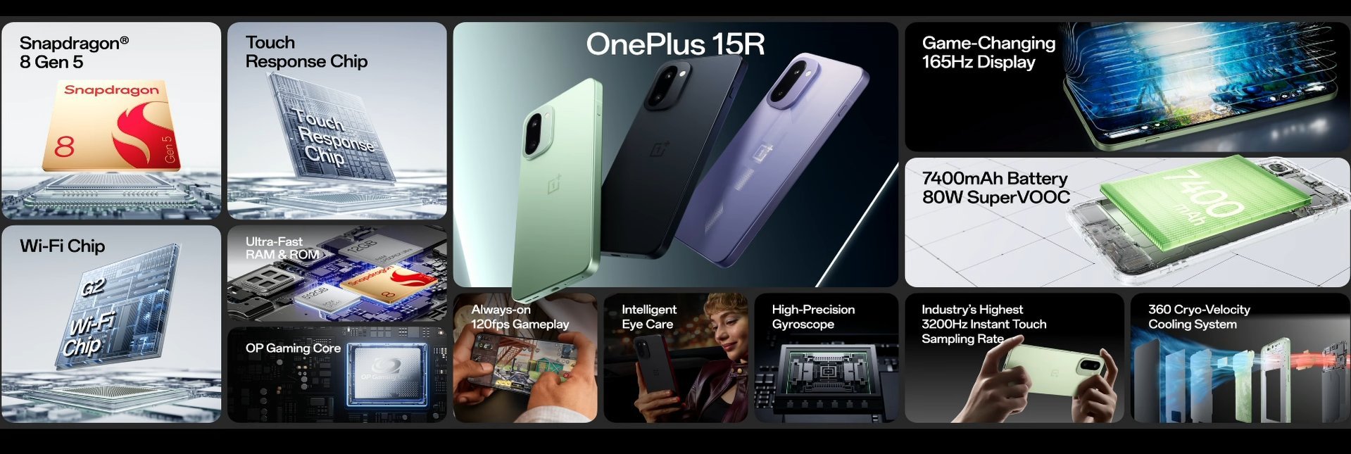 OnePlus 15R में 7,400mAh की बड़ी बैटरी दी गई है, जो लंबे समय तक बिना चार्ज किए फोन इस्तेमाल करने की आज़ादी देती है। 80W SuperVOOC फास्ट चार्जिंग के साथ कुछ ही मिनटों में फोन फिर से तैयार हो जाता है। यह फीचर खासतौर पर उन लोगों के लिए फायदेमंद है जो दिनभर फोन पर निर्भर रहते हैं।